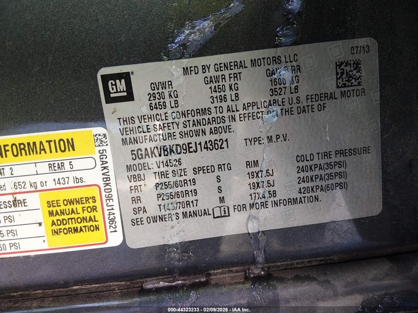 VIN: 5GAKVBKD9EJ143621