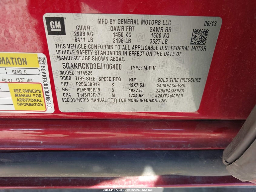 VIN: 5GAKRCKD3EJ106400