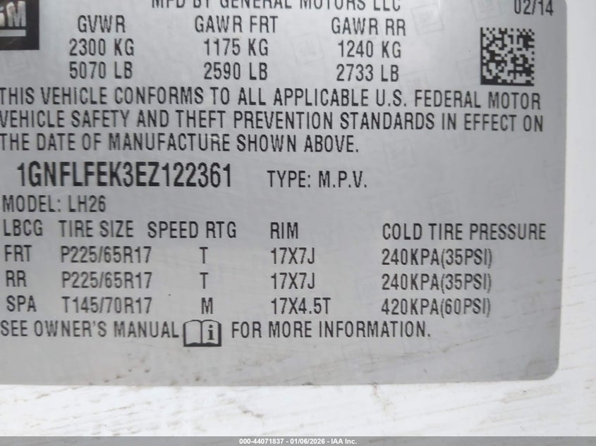VIN: 1GNFLFEK3EZ122361