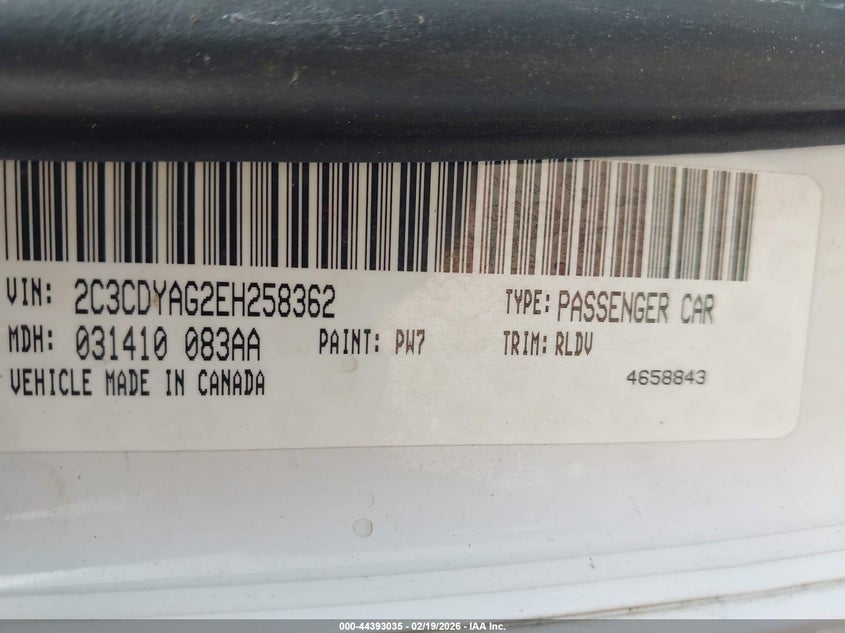VIN: 2C3CDYAG2EH258362