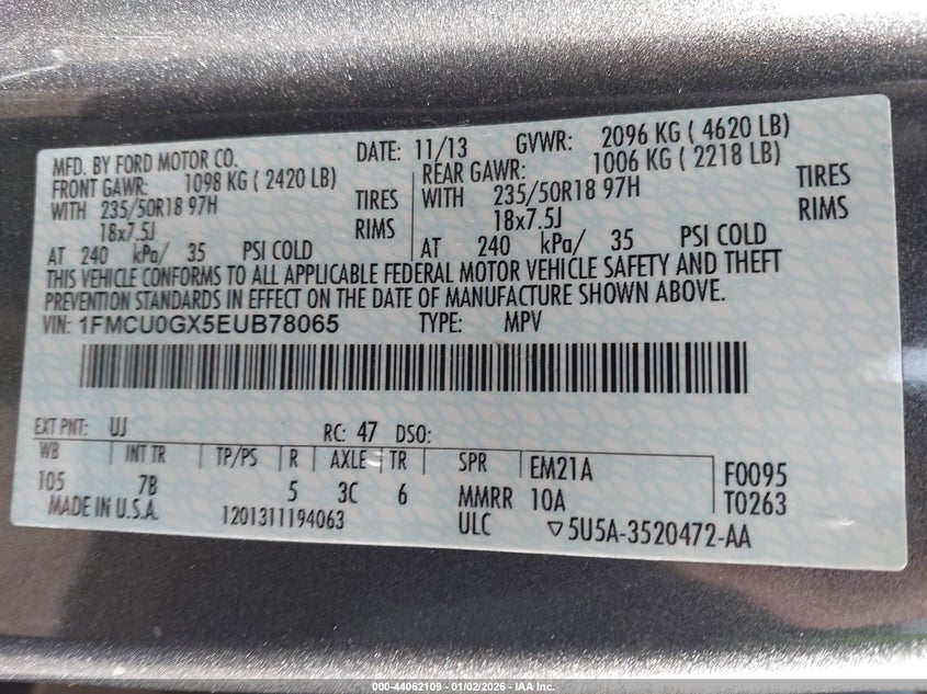 VIN: 1FMCU0GX5EUB78065