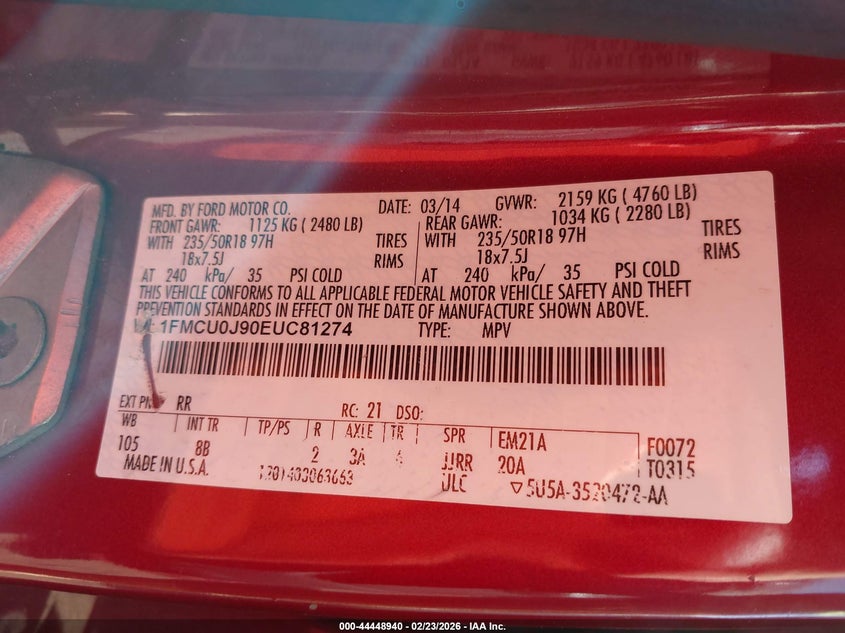 VIN: 1FMCU0J90EUC81274