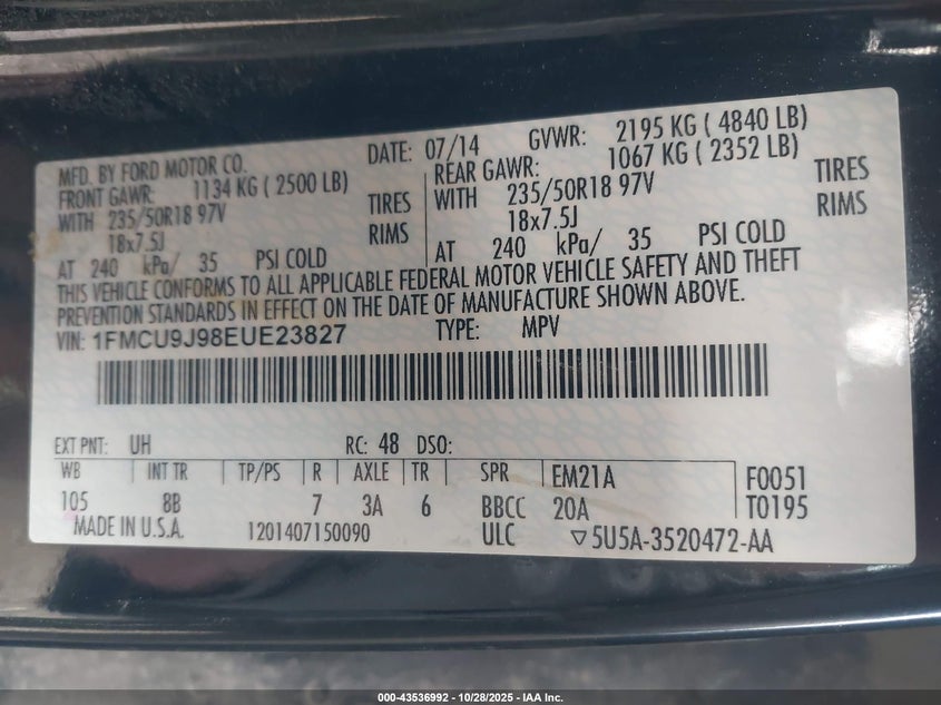 VIN: 1FMCU9J98EUE23827