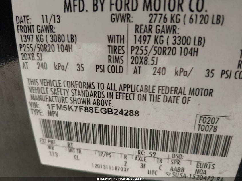 VIN: 1FM5K7F88EGB24288