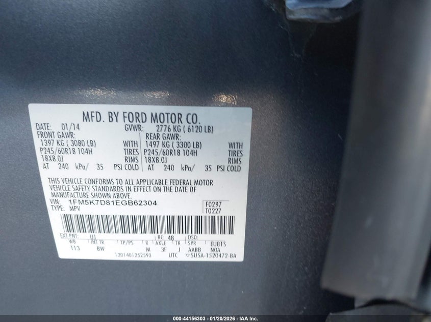 VIN: 1FM5K7D81EGB62304