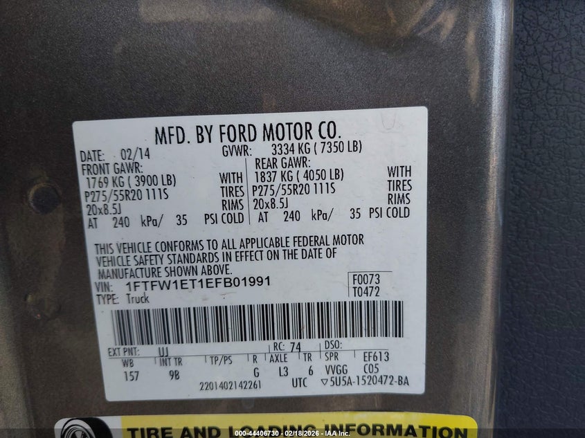VIN: 1FTFW1ET1EFB01991
