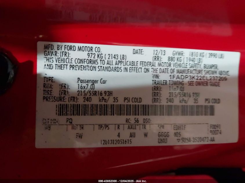 VIN: 1FADP3K22EL237209