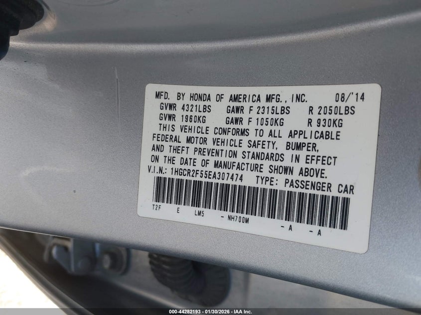 VIN: 1HGCR2F55EA307474