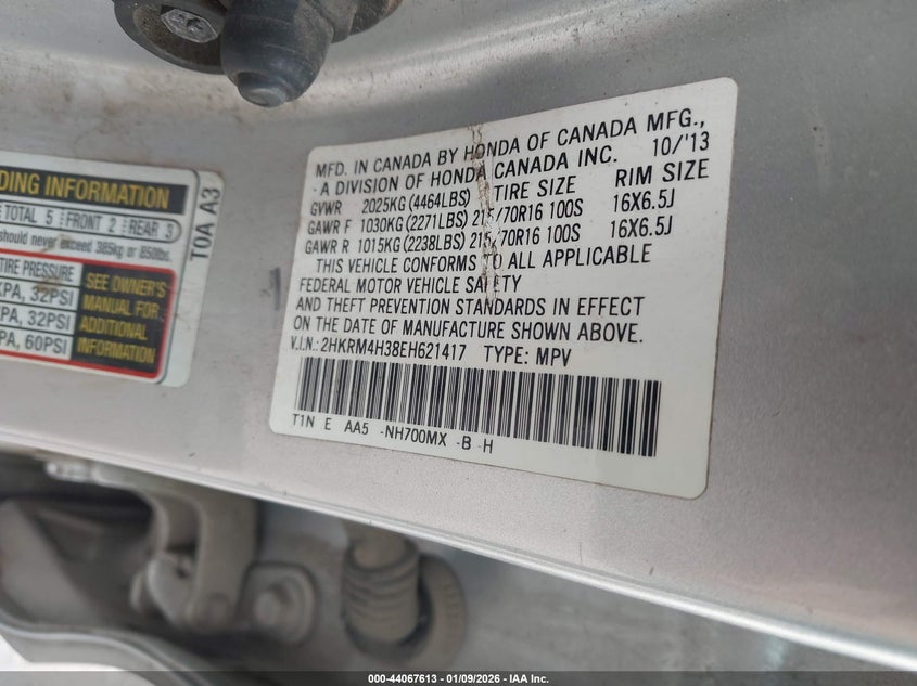 VIN: 2HKRM4H38EH621417
