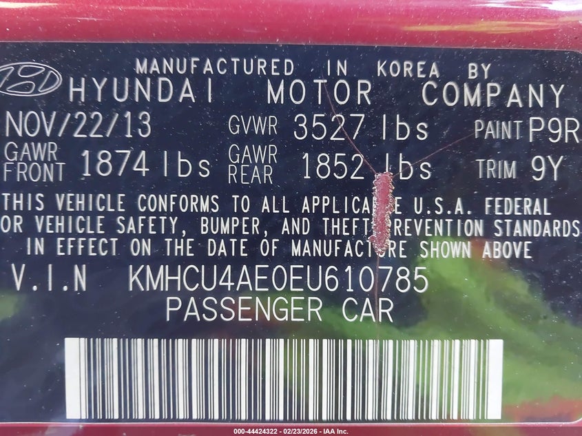 VIN: KMHCU4AE0EU610785