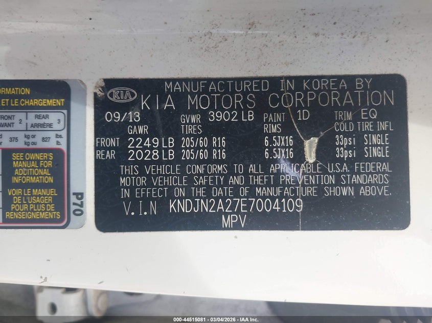 VIN: KNDJN2A27E7004109