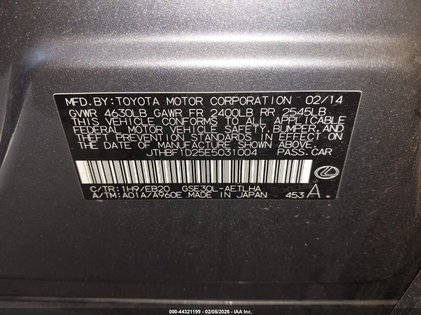 VIN: JTHBF1D25E5031004