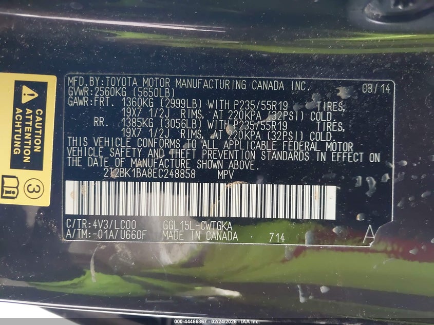 VIN: 2T2BK1BA8EC248858
