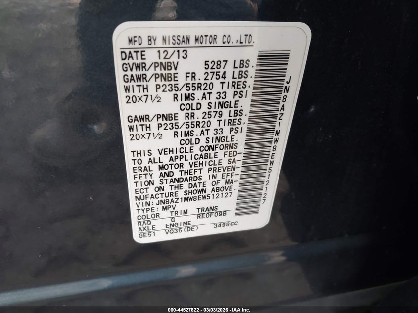 VIN: JN8AZ1MW8EW512127
