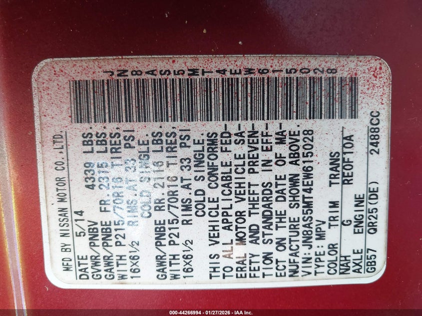VIN: JN8AS5MT4EW615028