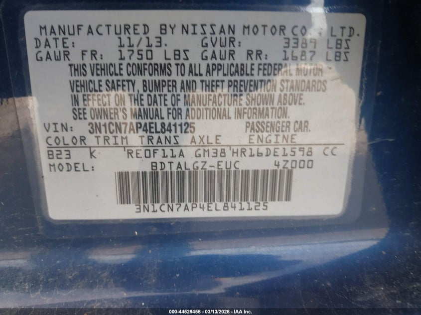 VIN: 3N1CN7AP4EL841125