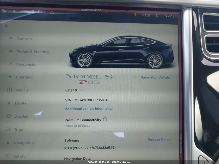 2014 TESLA MODEL S P85