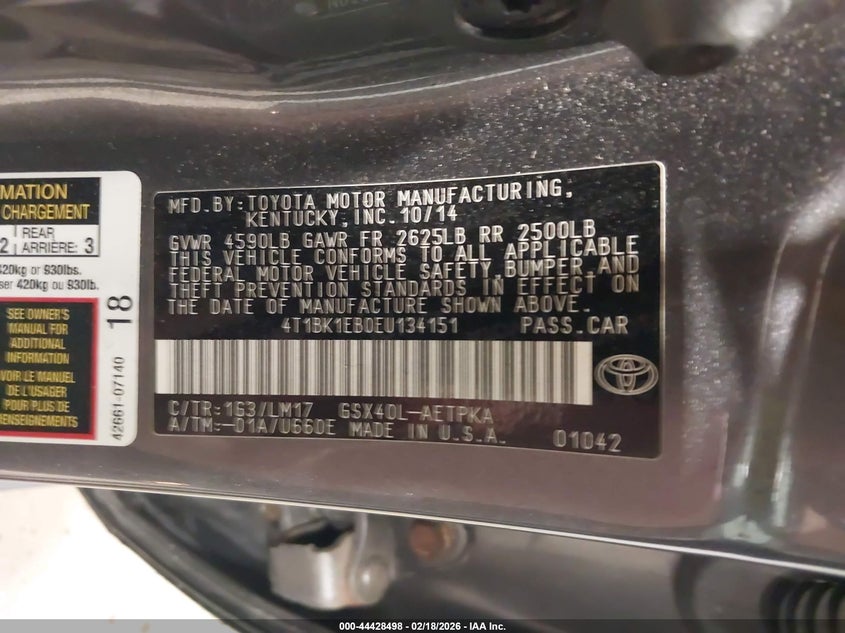 VIN: 4T1BK1EB0EU134151