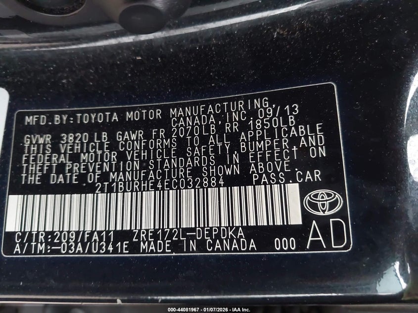 VIN: 2T1BURHE4EC032884