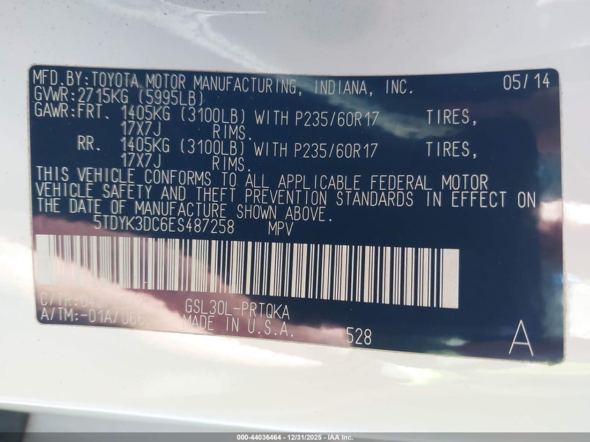 VIN: 5TDYK3DC6ES487258