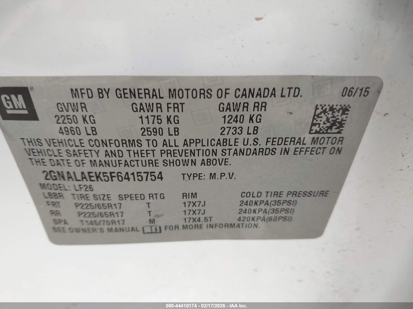 VIN: 2GNALAEK5F6415754