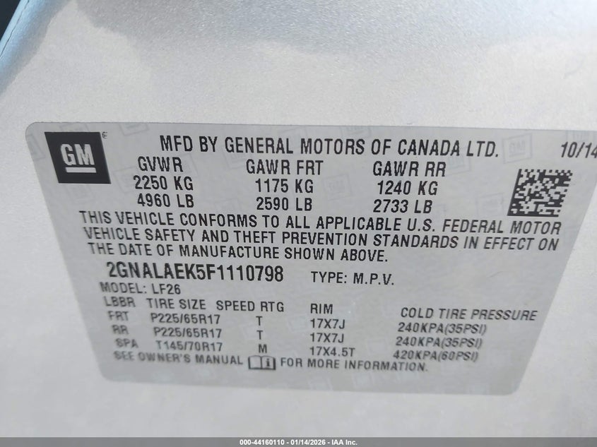 VIN: 2GNALAEK5F1110798
