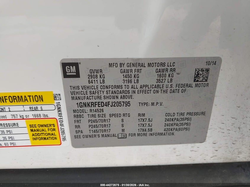 VIN: 1GNKRFED4FJ205795