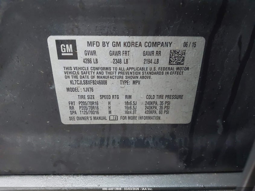 VIN: KL7CJLSBXFB246008