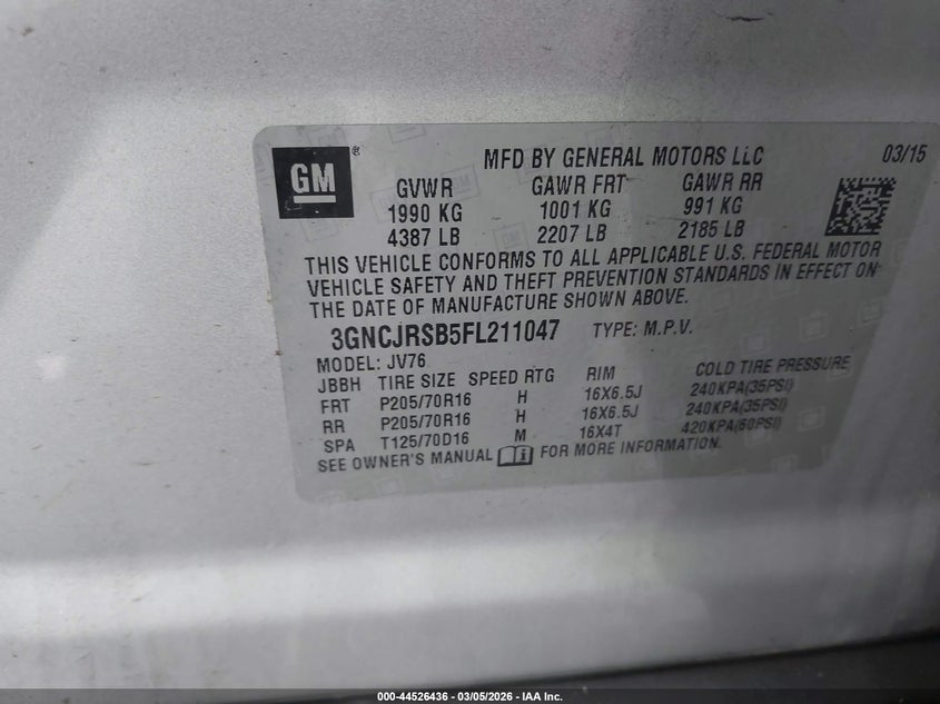 VIN: 3GNCJRSB5FL211047