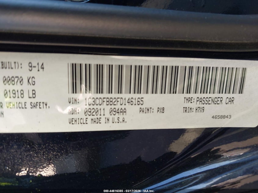 VIN: 1C3CDFBB2FD146165