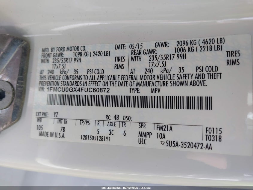 VIN: 1FMCU0GX4FUC60872