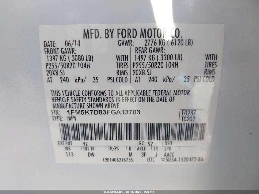 VIN: 1FM5K7D83FGA13703