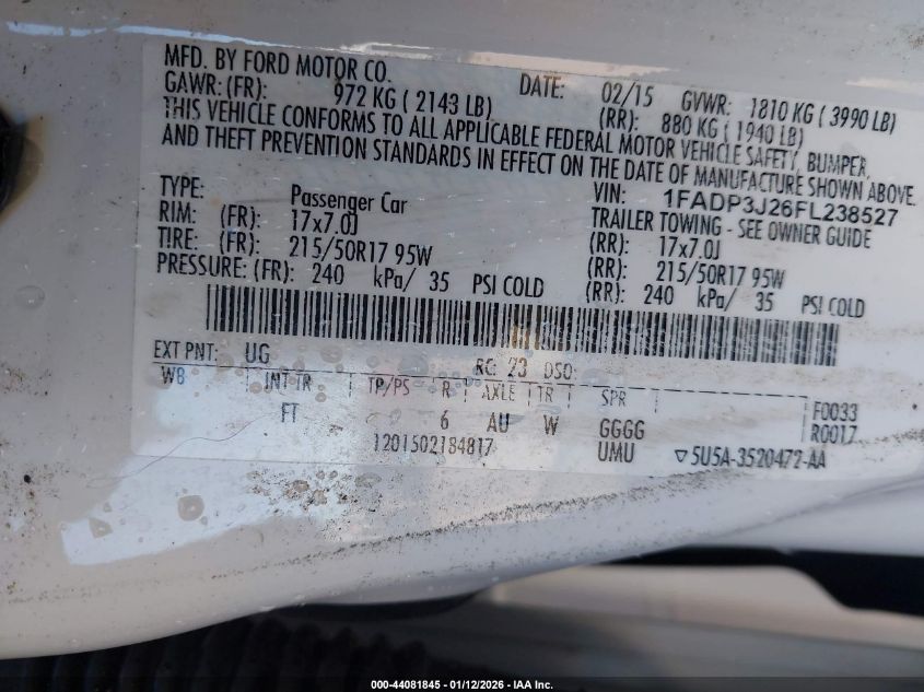 VIN: 1FADP3J26FL238527
