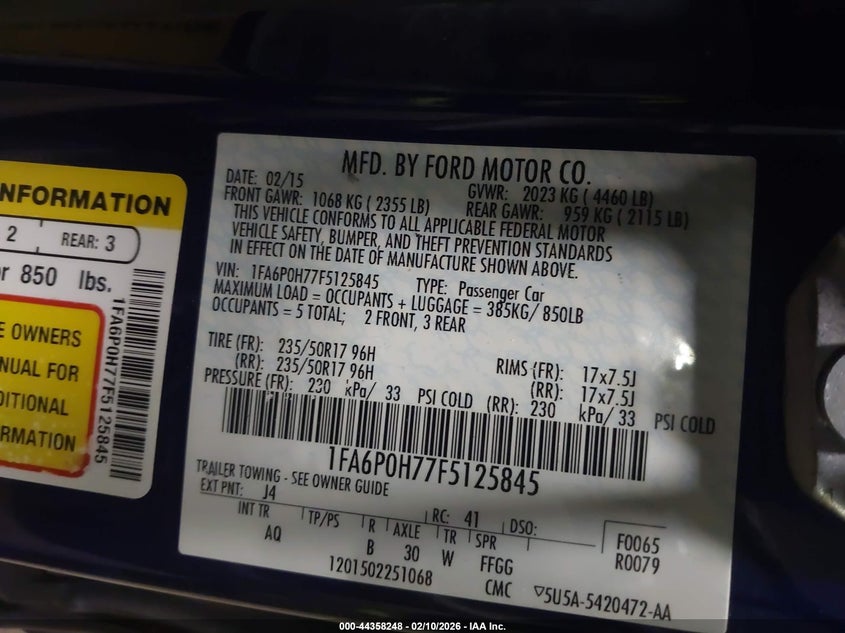 VIN: 1FA6P0H77F5125845