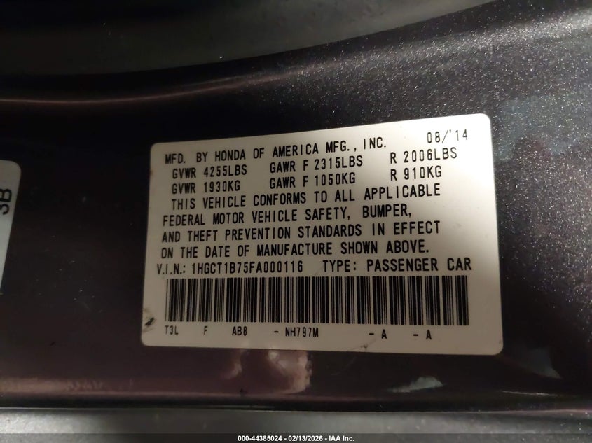VIN: 1HGCT1B75FA000116