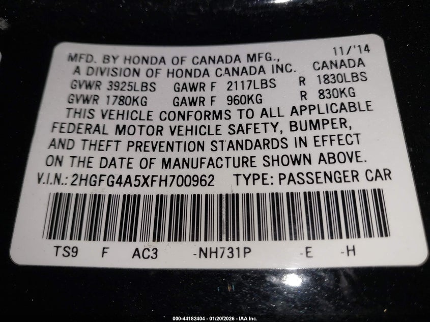 VIN: 2HGFG4A5XFH700962