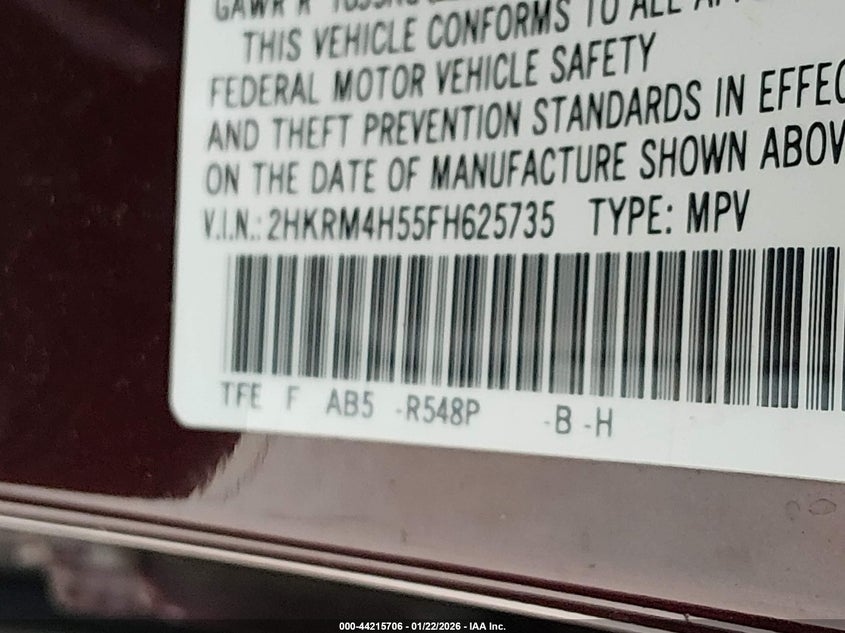 VIN: 2HKRM4H55FH625735
