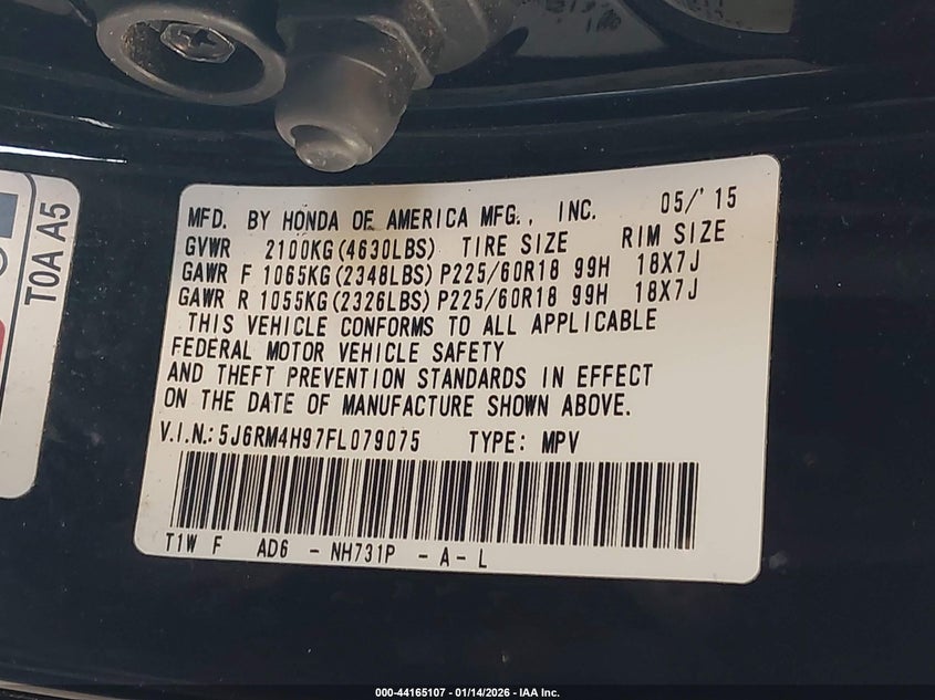 VIN: 5J6RM4H97FL079075