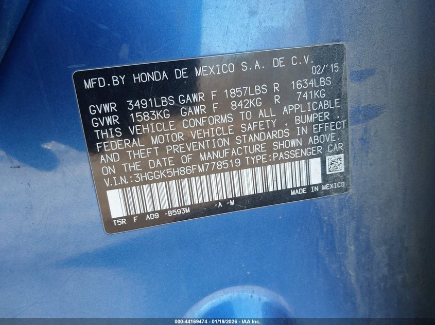 VIN: 3HGGK5H86FM778519