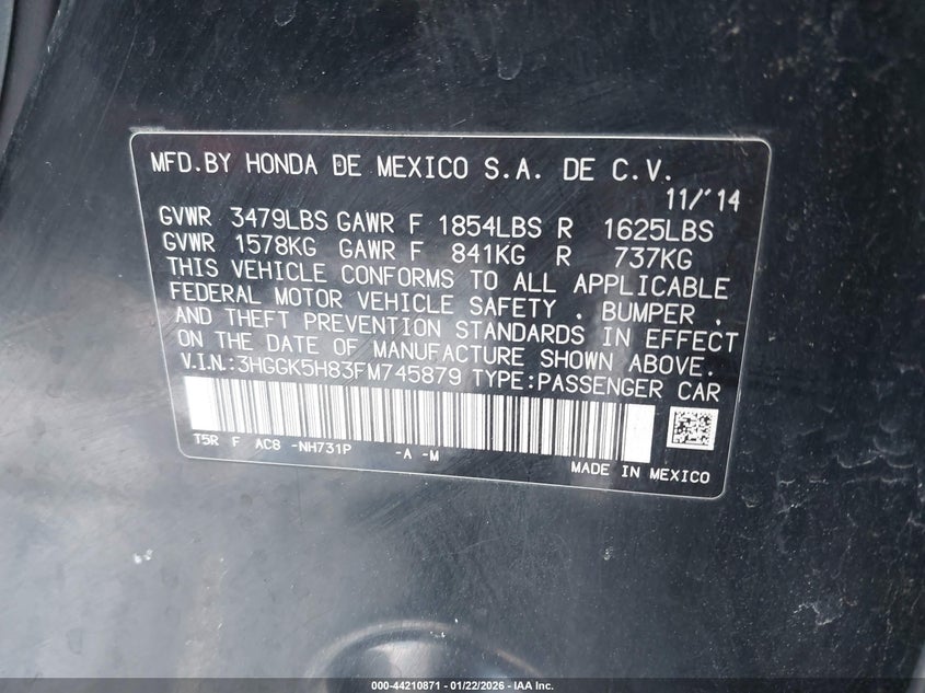 VIN: 3HGGK5H83FM745879
