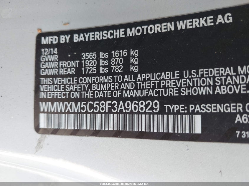 VIN: WMWXM5C58F3A96829