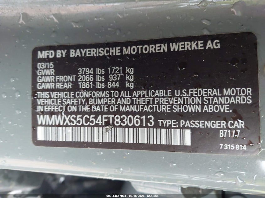VIN: WMWXS5C54FT830613