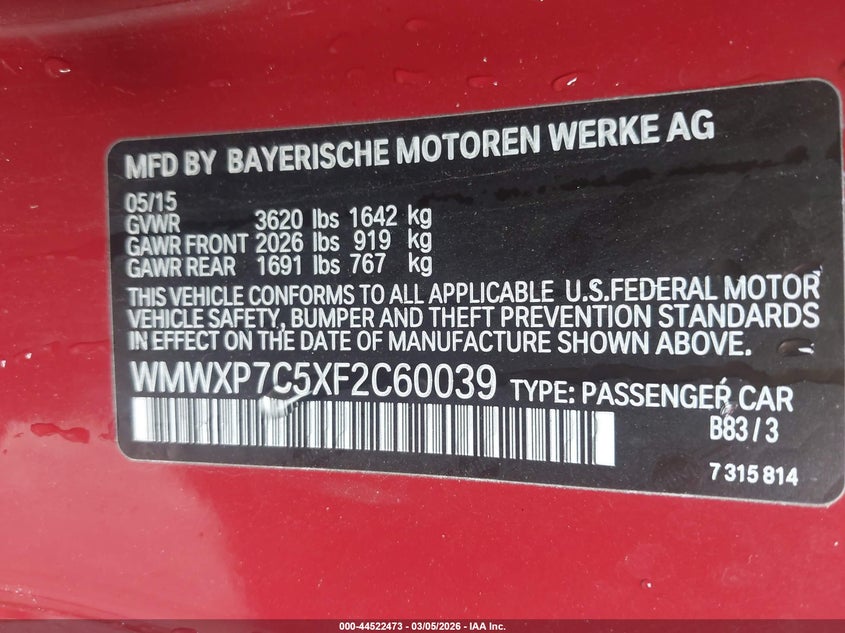 VIN: WMWXP7C5XF2C60039