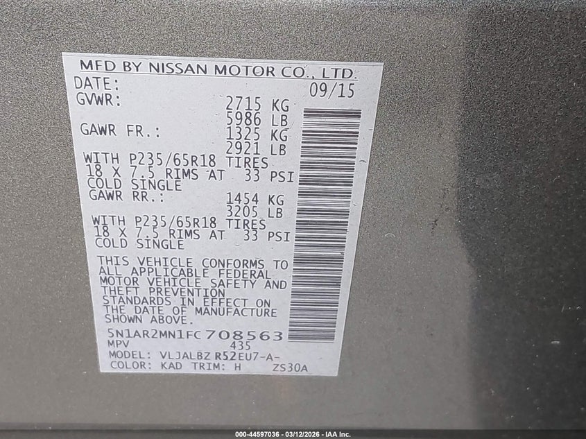 VIN: 5N1AR2MN1FC708563