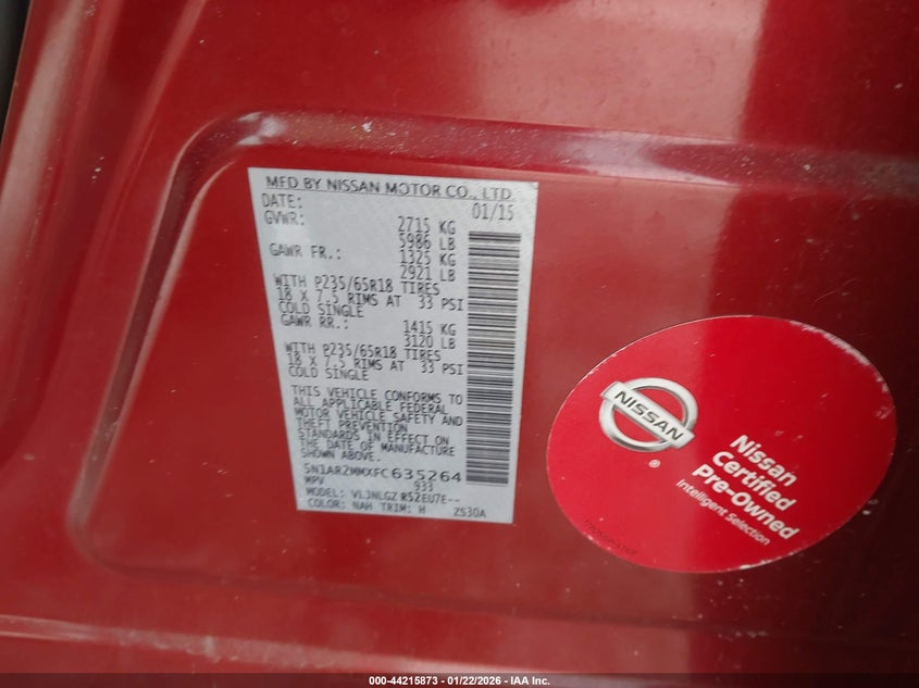 VIN: 5N1AR2MMXFC635264