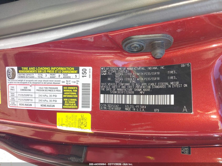 2015 TOYOTA SIENNA XLE PREMIUM 7 PASSENGER