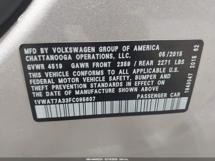 2015 VOLKSWAGEN PASSAT 1.8T LIMITED EDITION