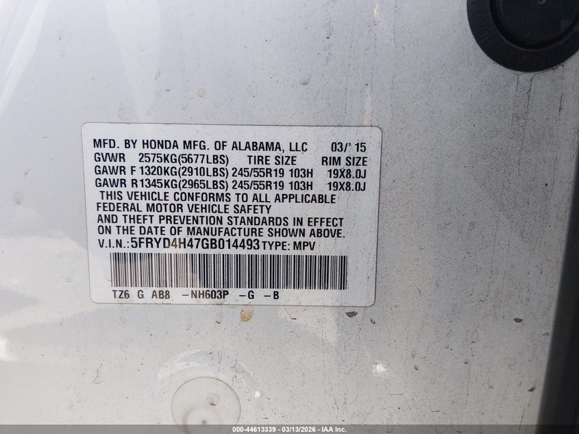 VIN: 5FRYD4H47GB014493