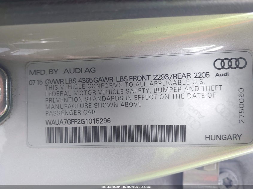 VIN: WAUA7GFF2G1015296