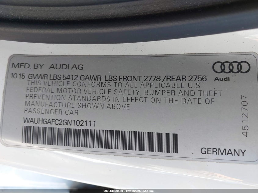 VIN: WAUHGAFC2GN102111
